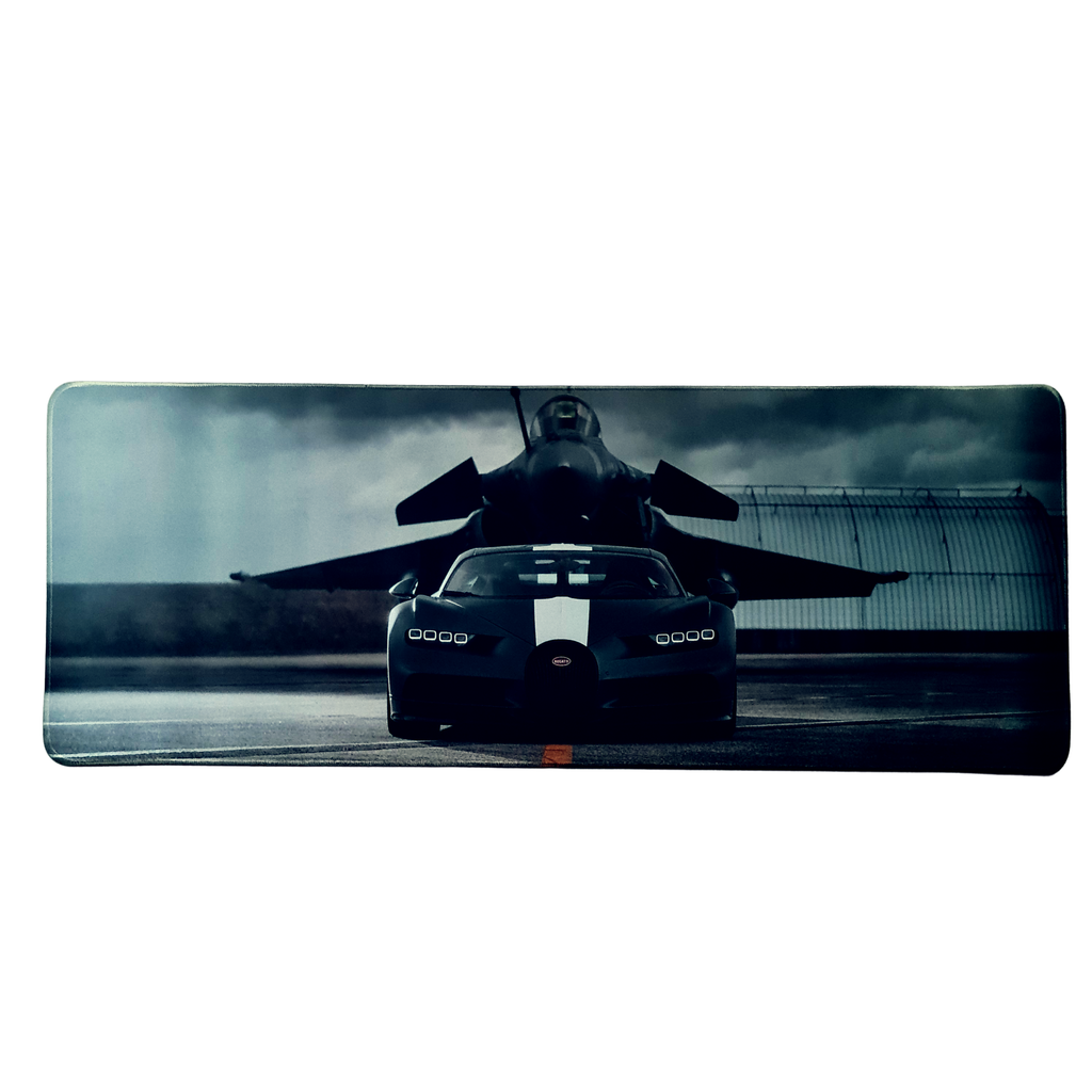 Mouse Pad Megarex Gamer 80x30x3mm Carro Bugatti Chiron speed Antiderrapante Borda Costurada Grande